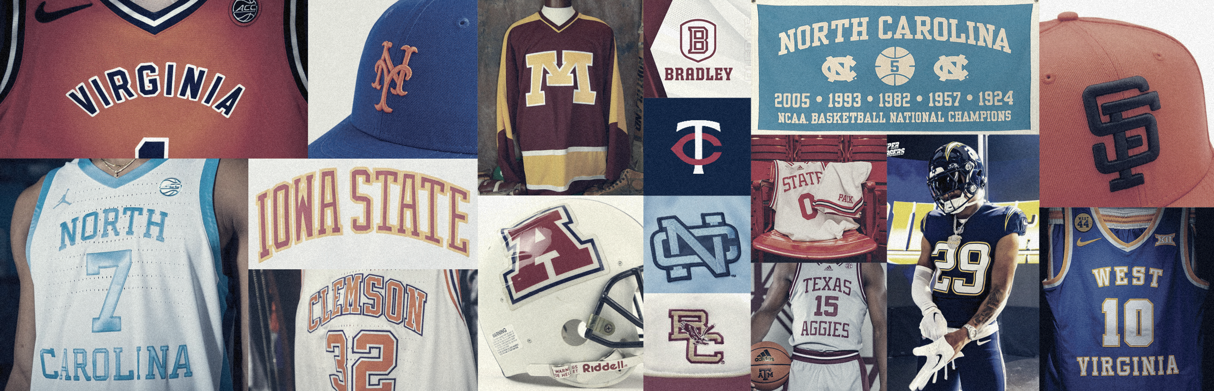 One of the main subjects of my interest, both as a fan and a designer, has always been college basketball. I also enjoy the current popularity of vintage aesthetics in sports, whether that be many teams creating “modern classic” looks, or the increased prevalence of throwback uniforms. This lead me in the direction of rooting my identity in the typography found in vintage college sports (primarily basketball) uniforms, as I felt it connected strongly to my interests both currently and historically.